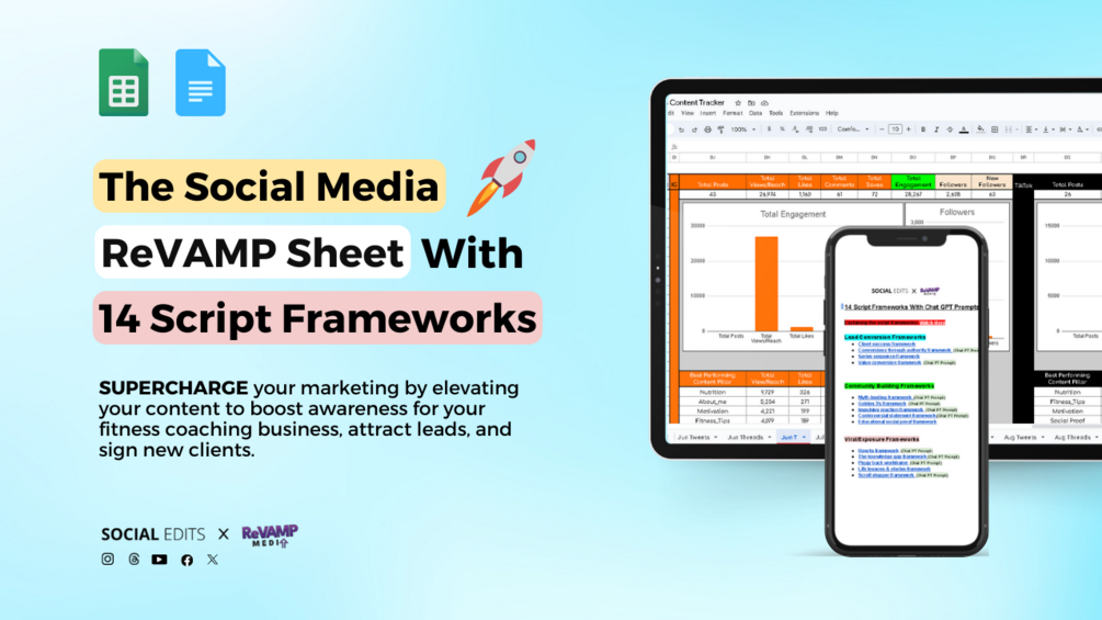 Elevate Your Fitness Marketing Using The Social Media ReVAMP Sheet with 15 Game-Changing Script Frameworks to Skyrocket Leads & Clients!Â